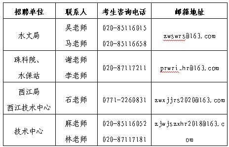 各招聘单位咨询电话及邮箱: